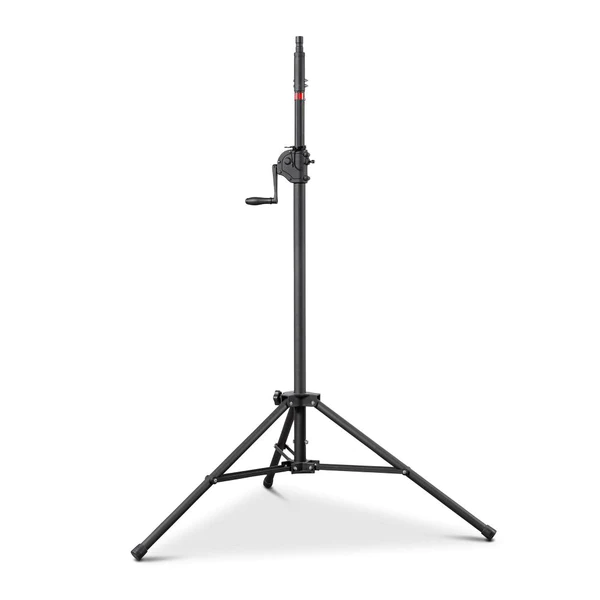 - Tripod is equipped with easy-to-use low-gear hand crank