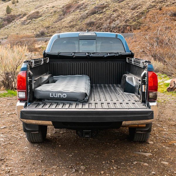 Finally, a restful night’s sleep in your truck bed. This mattress inflates in just a few minutes to create a comfortable sleeping surface in your truck bed, big enough for two campers.